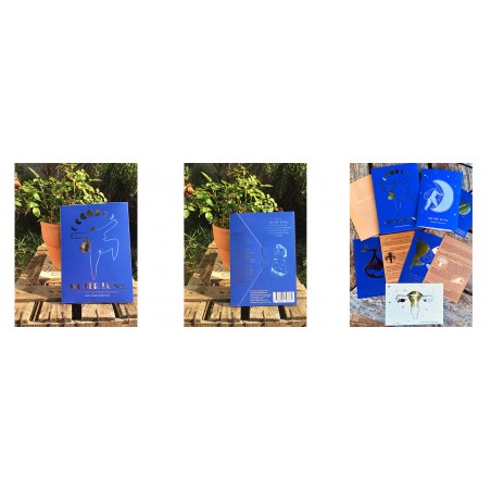 Por una cara hay un dibujo acompañado de unas palabras clave que nos ayudarán a conectar con la esencia y energía de cada fase y por detrás de cada carta, una explicación más detallada de los aspectos emocionales, físicos y espirituales. Además de una recomendación de cómo acompañar cada fase para la familia, amigxs o compañeros de casa/trabajo.